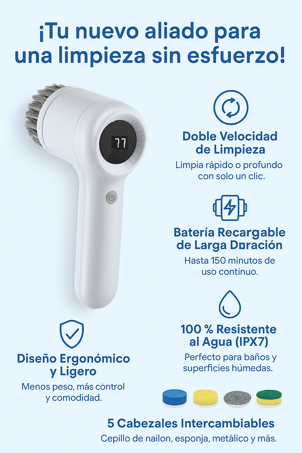 🧼 5 Cabezas Intercambiables Incluidas |
